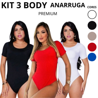 Kit 3 Body Manga Curta Canelado Feminino Atoalhado Anaruga Manguinha Premium Elastano