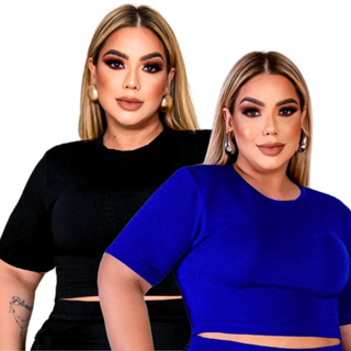 Kit 2 Cropped Feminino Plus Size Com Manguinha Blusinha Feminina Ana Ruga Com Elastano Do GG ao G4