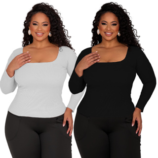 Kit 2 Blusas Plus Size de Manga Comprida feminina Inverno Casual Chique Até G4