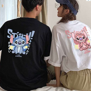 Camiseta Unissex Oversized Plus Size Feminina Masculina Preta Unissex, Design Personagem Cartoon Estilizado Stitch e Te