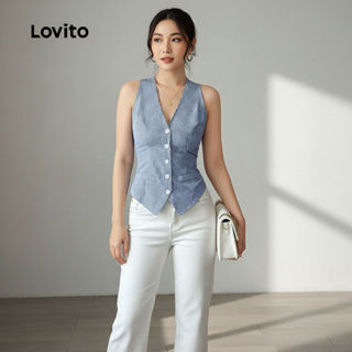 Blusa Casual Feminina Lovito Azul com Botões Frente Primavera Verão LBL28236