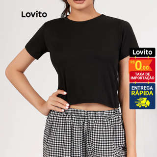 Lovito Camiseta Feminino Casual Lisa Básica com Gola Careca Primavera/verão L18X101