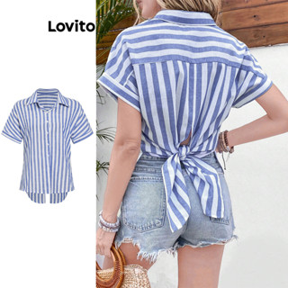 Lovito Blusa Elegante Listrada Com Amarração Nas Costas Blusa De Verão Para Mulheres L74ED226 (Multicolorido)