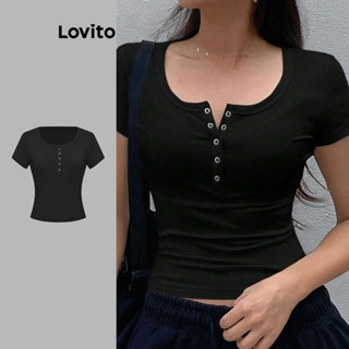 Lovito Camiseta Casual Com Botões Lisos E Canelados Para Mulheres L106AD194
