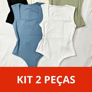 Kit 02 Body Bori Feminino Regata Madrid Decote Quadrado Alças Grossas Estiloso Elegante