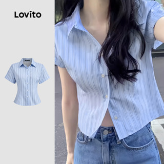 Lovito Blusa Casual Com Textura De Botão Blusa Azul Primavera/verão Para Mulheres L144AD218
