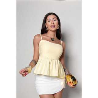 Blusa Bata Blusinha Cropped Elástico com Babado Soltinha Peplum Moda Gringa Tendência Verão