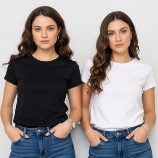 Kit Com 2 Camisetas Baby Look T-Shirt Basica 100% Algodão