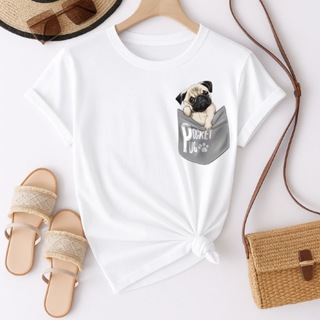 Camiseta Feminina estampa Pug No Bolso Oversize 100% algodão.