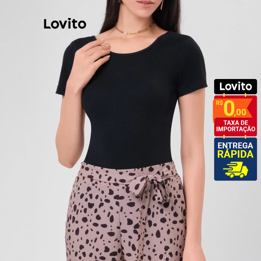 Lovito Body Manga Curta Gola Canoa Basico Feminino LB46BRL075