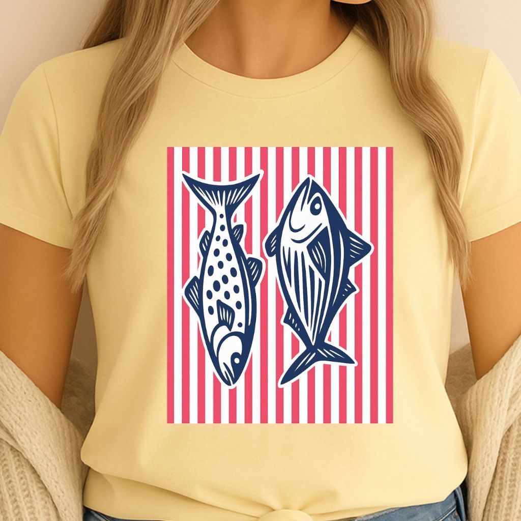 T-Shirt Estampada SARDINES 2 SARDINHAS Camiseta Básica 100% Algodão 30.1 Leve e Fresquinha