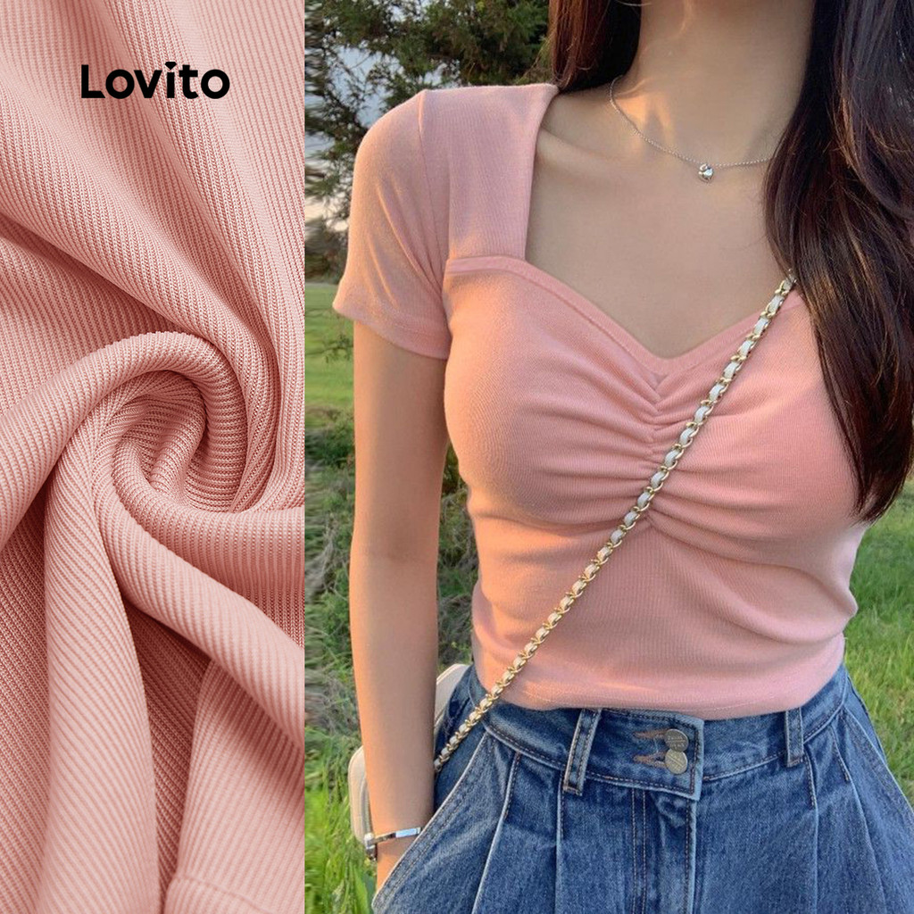 Lovito Camiseta Casual Feminina Manga Curta com Tecido Texturizado LNL43068