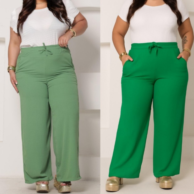 A&D Calça Pantalona Feminino De Duna Plus Size com bolso