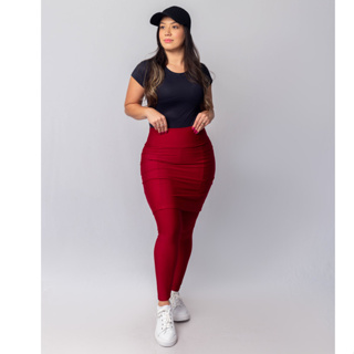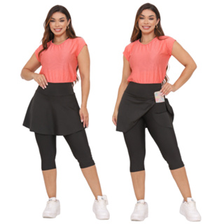 Calça Saia Fitness com Bolso Plus Size Moda Evangélica G1 G2