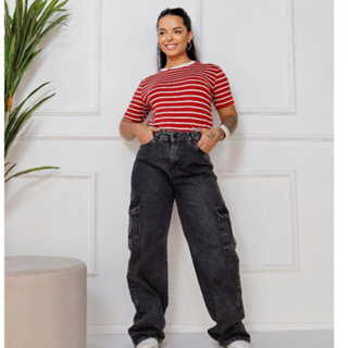 Calça Cargo Feminin Marmorizada Confortável Casual Versátil Tendência Elegante Moderna Blogueira