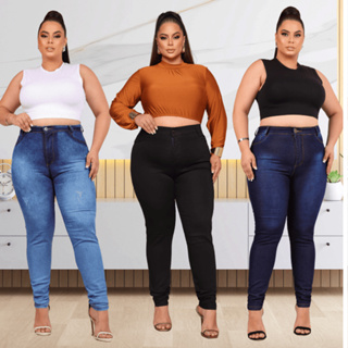 KIT 03 Calças Jeans Feminina Plus Size Com Elastano Levanta Bumbum do 46 ao 56
