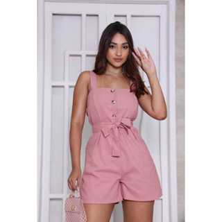 Macaquinho em linho com alça  ,botões  acompanha cinto de amarração em Oferta na Shopee Shopee