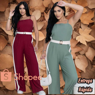 Macacão Alfaiataria Feminino Com Listras Laterais, Com Cinto Moda Mulher Envio Rapido em Oferta na Shopee Shopee