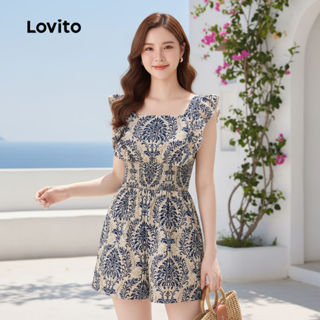 Lovito Macacão Boho Tribal Print Ruffle Smocked para mulheres L104ED093\2 em Oferta na Shopee Shopee