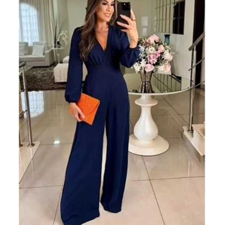 Macacão duna, com decote em V, Calça longa super em alta em Oferta na Shopee Shopee
