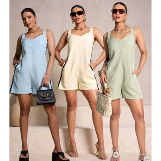 Macaquinho Macacão Karen Feminino Linho Com amarração e Botões em Oferta na Shopee Shopee