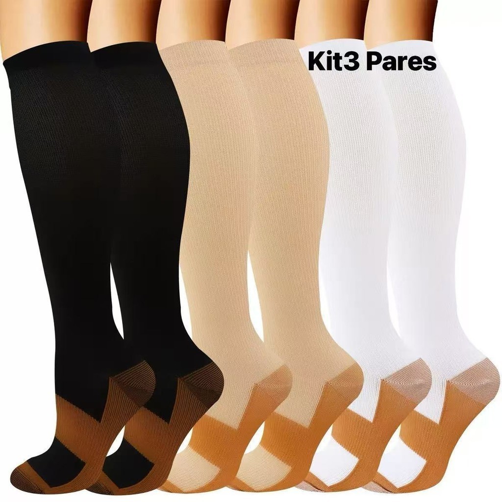 Kit3 Pares Meias de Compressão para Enfermeiras, Grávidas e Atletas Aliviam Edema e Varizes