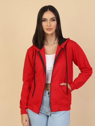 Blusa de Frio Moletom com Ziper Feminina Liso Direta Da Fabrica