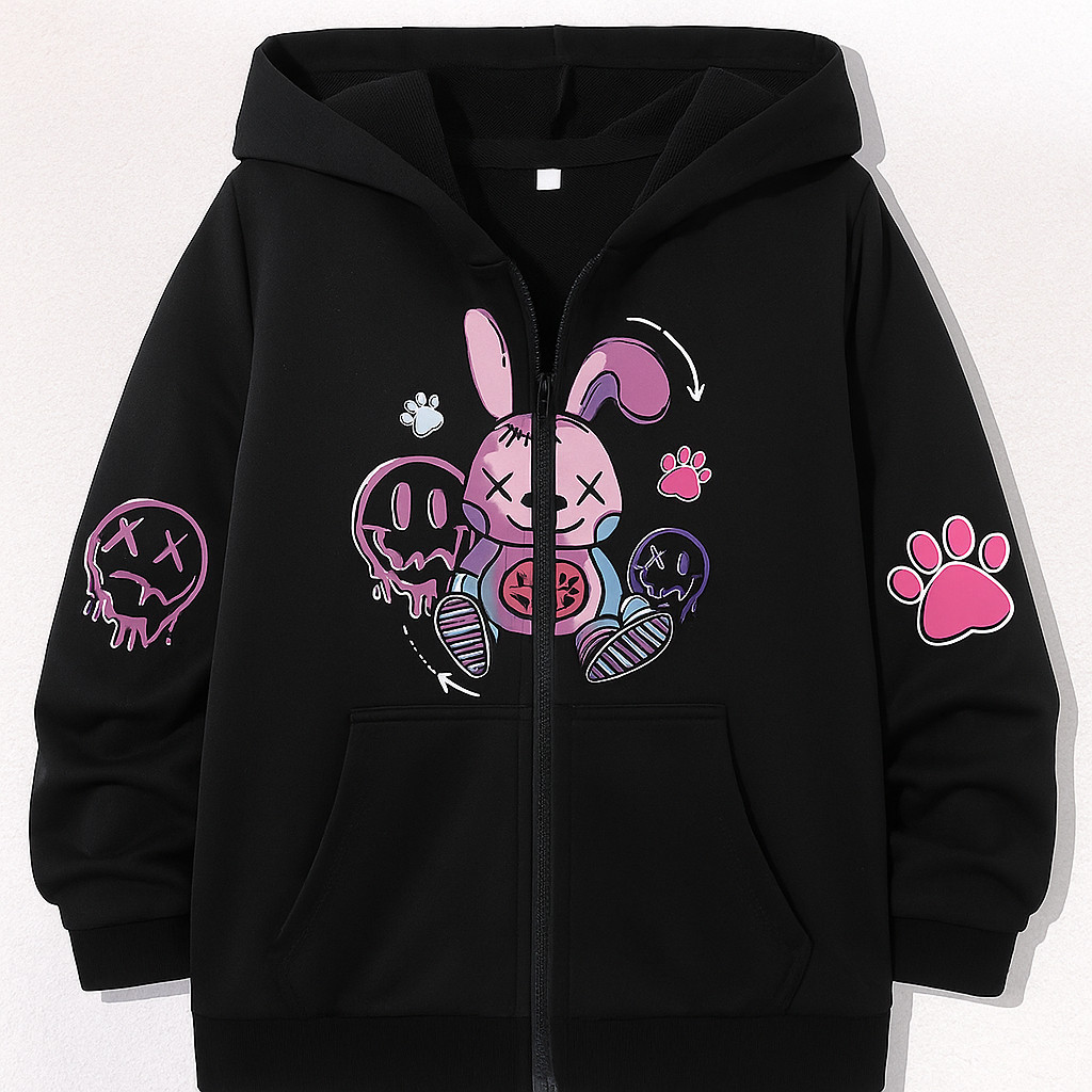 Moletom Ziper Unissex Estética Cute Punk Ziper Estilo Criativo Coelho Tendência Inverno