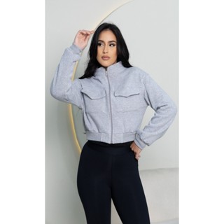 Moletom Cropped Casaco Feminino de Manga Longa com Zíper para Outono-Inverno