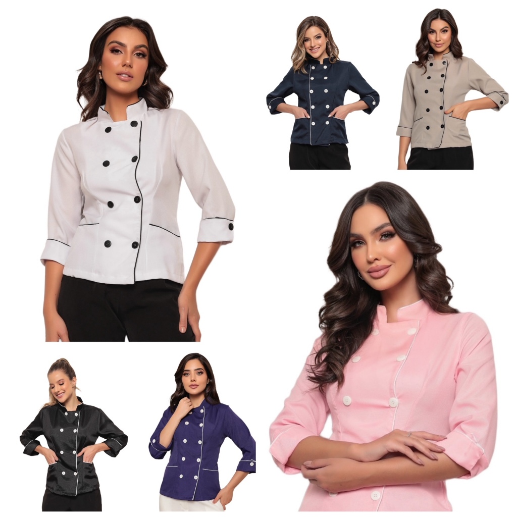 Jaleco Feminino Diversas Cores gabardine Com Ziper Gola Padre Manga curta.