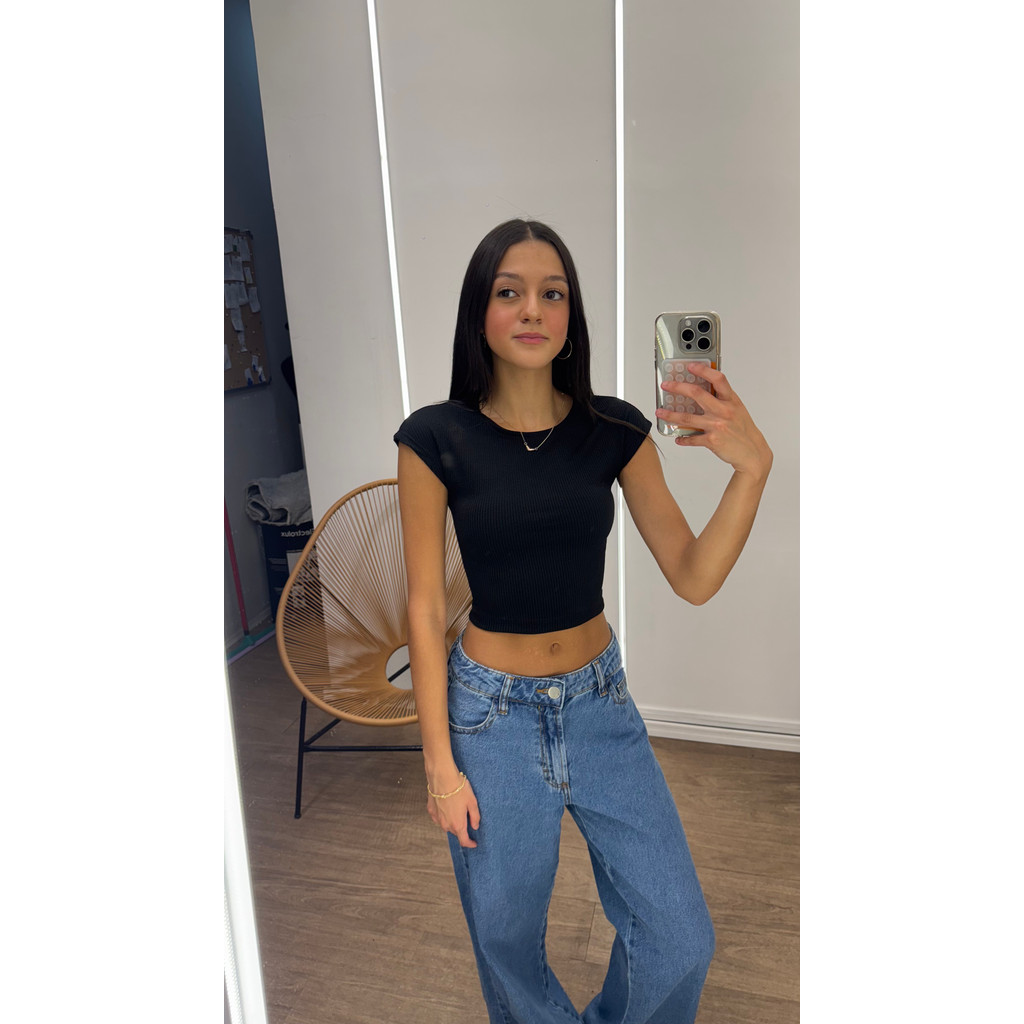 CROPPED CANELADA JUVENIL MANGA CURTA
