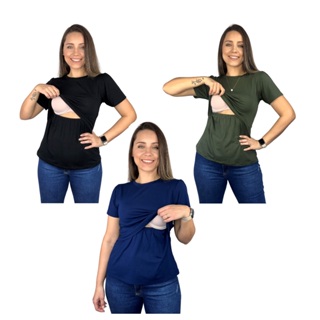Kit 3 Blusa Amamentação Diversas Cores Viscolycra Premium Camiseta Manga Curta Gestante Amamentar em Oferta na Shopee Shopee