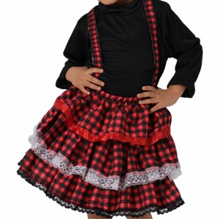Saia Infantil Festa Junina Xadrez Vermelha Salopete Jardineira de Luxo Com Babados Dança Quadrilha São João