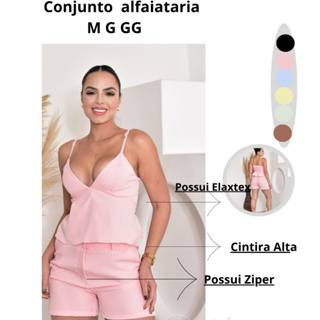 Conjunto Feminino Alfaiataria Short +top Cropped Babado e Elastex nas costas E Ziper-MODA VERAO