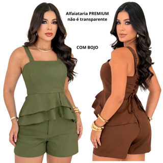 Conjunto Feminino Alfaiataria Short e Blusa Peplum Elegante Moda Casual Social Tendência