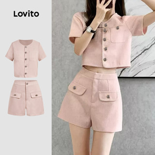 (New) Lovito Conjuntos de Shorts Elegantes com Botão Conjunto Rosa de Primavera/verão para Mulheres L144AD171