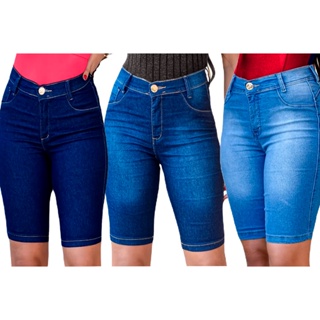Kit 3 Bermuda Feminina Ciclista Jeans Lycra (Até o Joelho) temos do 38 ao 48