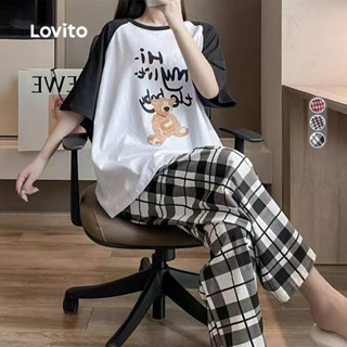 Lovito Conjunto de Pijama Casual 2 Peças Estilo Urso Bonito Solto Fresco Para Usar Em Casa para Mulheres LNE126137 em Oferta na Shopee Shopee