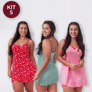 Kit 5 Camisolas Feminina Poliéster Estampada Adulto Pijama Feminino Sexy Camisola Vestido de Dormir em Oferta na Shopee Shopee
