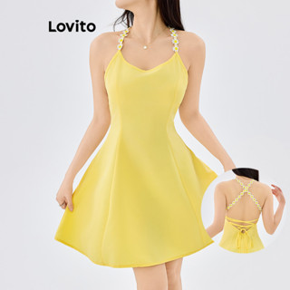 Lovito Refine Vestido Feminino Elegante Botões Primavera Verão Amarelo L154LD101
