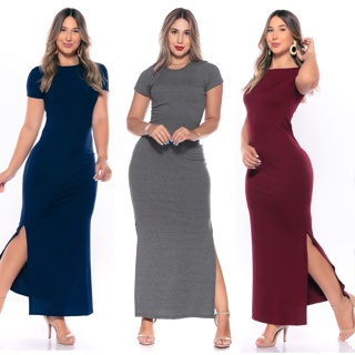 Vestido Longo Liso Feminina Bicolor com forrto Casual Tecido Duna H-11