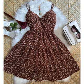 Vestido Curto Feminino Casual de Alça Tendência 2026 Estampado Floral Verão Crepe Leve
