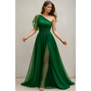 Vestido Longo de Festa Com Fenda Madrinha Ombro Unico OX004
