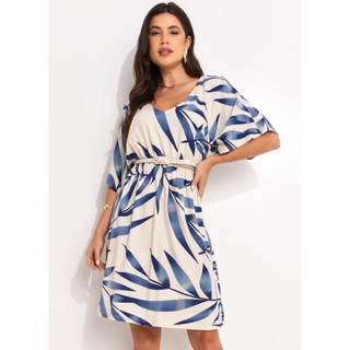 Vestido Feminino Folhagem Azul Quintess Casual Tendência