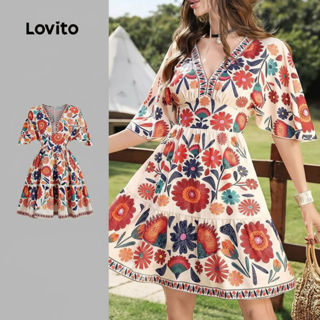 Lovito Vestido Feminino Boho Estampado Multicolor Primavera Verão L135ED250