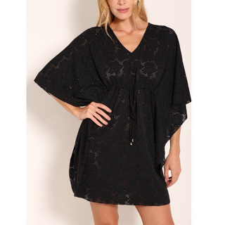 Vestido Saída de Praia Laise Com Amarração Frontal E Manga Morcego Moda Elegante Tendência Luxo