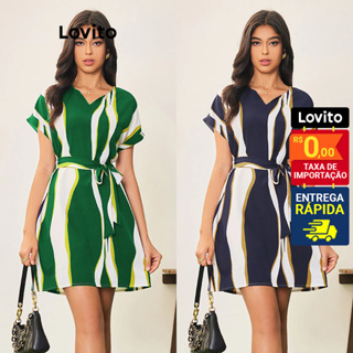 Lovito Vestido Casual Listrado Com Botão Frontal E Cinto Para Mulheres LNL79306