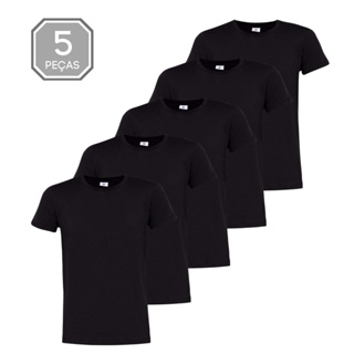 Kit 5 Camisetas Básicas Pretas Lisas Malha 100% Algodão Fio 30.1