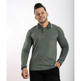 Camisa Masculina Algodão Manga Comprida Blusa de Frio Casual Estiloso Branca Colorida Preta