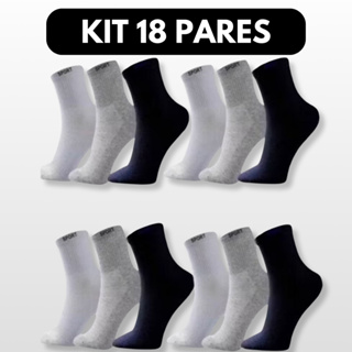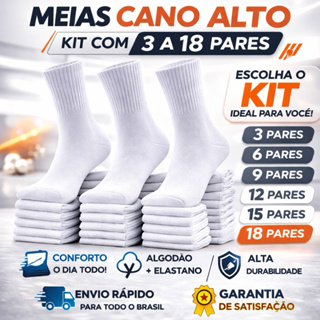 Kit 3 a 18 Pares de Meias Cano Alto Brancas Esportivas Algodão Premium Unissex 36 ao 44